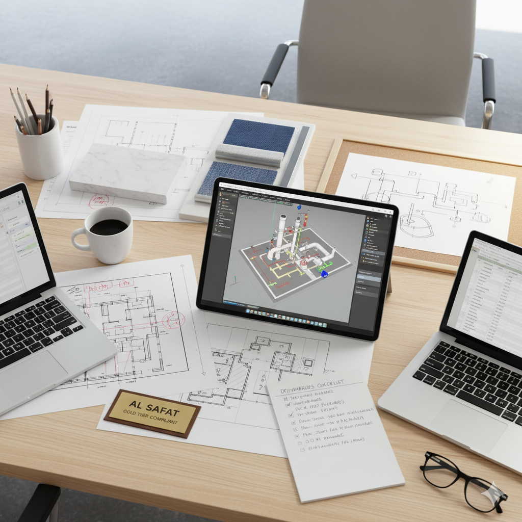 You also operate in one of the most regulated and fast-moving markets on earth. The Dubai Building Code unifies rules across authorities, while Al Sa’fat – Dubai Green Building System embeds energy, water, materials, and indoor environmental quality into every decision. Free zones like Dubai Design District process fit-outs with a dedicated Fit-Out Permit that syncs with Dubai Civil Defence requirements under the UAE Fire and Life Safety Code. Dubai Civil Defense+3Dubai Municipality+3Dubai Municipality+3